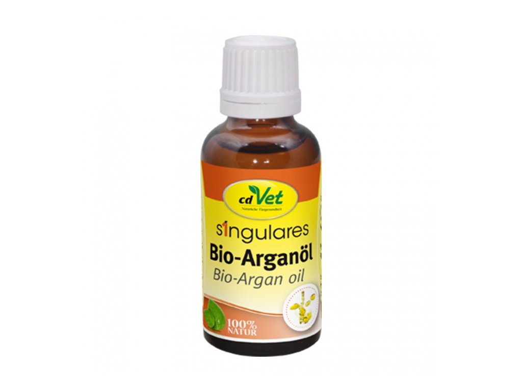cdVet Bio Arganový olej (Bio-Arganöl) je rastlinný olej z prvého lisovania za studena (panenský olej) 100% zo zberu vo voľnej prírode. Má vysoký podiel antioxidantov, teda zložiek chránacich bunky: predovšetkým prírodných tokoferolov (vit. E), ale i nenasýtených mastných kyselín a fytosterolov. Veľké množstvo fytoaktívnych substancií v tomto oleji revitalizuje kožu a podporuje jej regeneráciu.