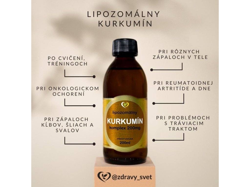 Kurkumín vo vysokovyužiteľnej a vysokovstrebateľnej lipozomálnej forme bez potreby aby bol prítomný piperín. Kurkumín môže byť pre naše telo veľmi dôležitý, ak ho podáme telu v jemu využiteľnej forme.