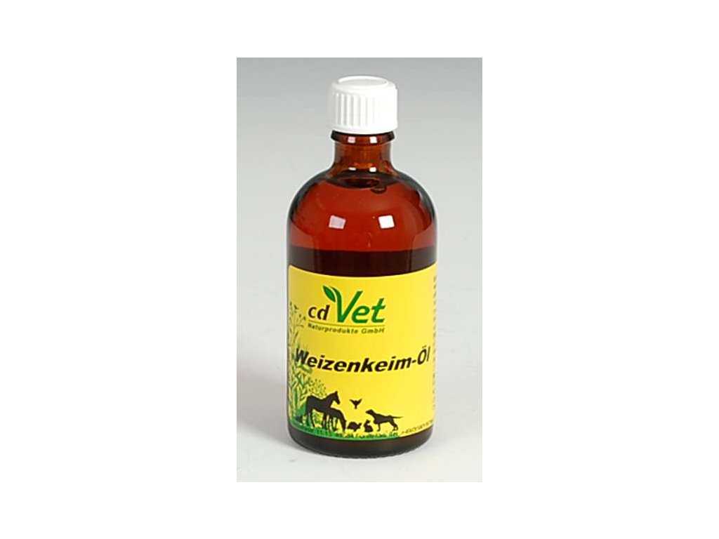 CdVet Olej z pšeničných klíčků (Weizenkeimöl) je rostlinný olej lisovaný za studena, který při pravidelném užívání podporuje prokrvení což působí příznivě na látkovou výměnu. Tím se zlepšuje kvalita pokožky, lesk srsti a celkový pocit pohody. cdVet Olej z pšeničných klíčků je jedním z nejbohatších na přírodní vitamin E. Olej je lisován šetrně podle DAB - Deutsches Artznei Buch (německá lékařská kniha) což garantuje zachování hodnot obsažených přírodních látek).
