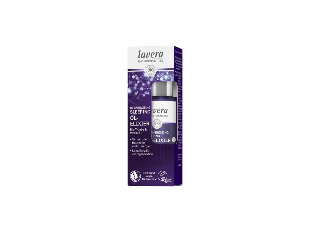 Olejový elixír od značky lavera stimuluje počas noci regeneráciu vlastných buniek pokožky a umožní vám ráno vstať so sviežou a žiarivou pokožkou. Jemná textúra obklopuje pokožku olejom z hroznových jadierok bohatým na antioxidanty a ďalšími silnými aktívnymi zložkami a zanecháva ju hodvábne jemnú. Bunky pokožky sú nabité novou energiou a pokožka zažiari prirodzenou krásou.
