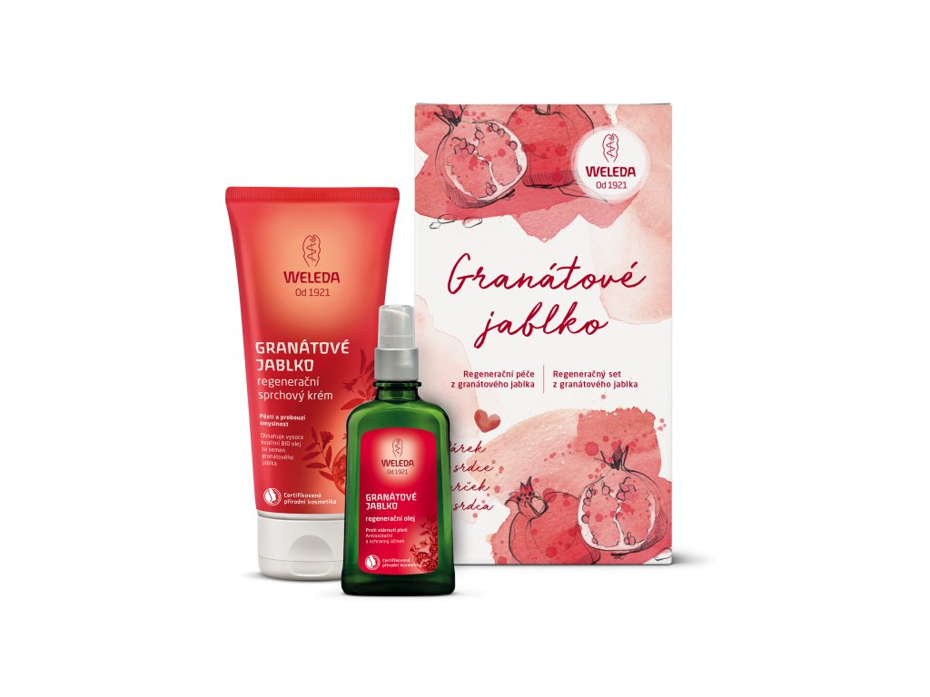 Doprajte si kvalitnú starostlivosť so zmyselnou vôňou Weleda granátového jablka v tomto cenovo zvýhodnenom sete.