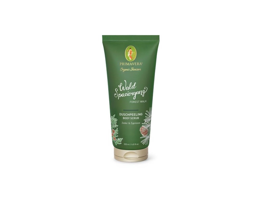 Aktivujúci sprchový peeling "v LESE" so 100% prírodným zložením, s čistou, drevitou, sviežou vôňou, jemne odstraňuje odumreté kožné bunky, stimuluje krvný obeh a podporuje obnovu pokožky.