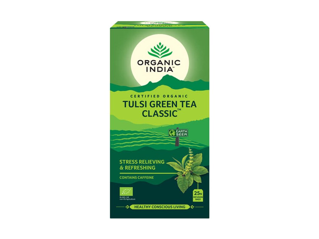 Tulsi so zeleným čajom Ajurvédsky čaj porciovaný Organic India 25 vreciek